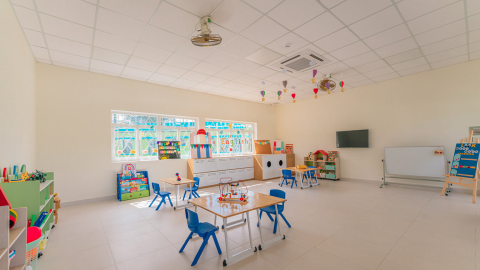 Mầm Non Hoàng Gia tự hào là nơi cung cấp một môi trường học tập tối ưu, đảm bảo sự phát triển toàn diện cho thiên thần nhỏ của bạn. Với cơ sở vật chất hiện đại và sáng tạo, các phòng học được thiết kế mở, tận dụng ánh sáng tự nhiên để tạo ra không gian thuận lợi cho sự tương tác và sáng tạo của trẻ. Khuôn viên rộng rãi, xanh mát, kèm theo sân chơi an toàn và khu vui chơi ngoại ô, tạo điều kiện cho trẻ khám phá và phát triển kỹ năng xã hội.